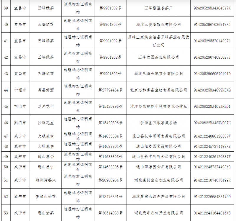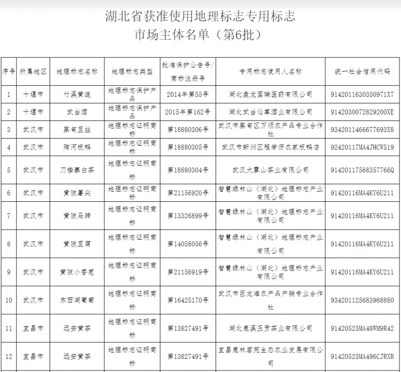 附件:湖北省獲準(zhǔn)使用地理標(biāo)志專用標(biāo)志市場(chǎng)主體名單(第6批)